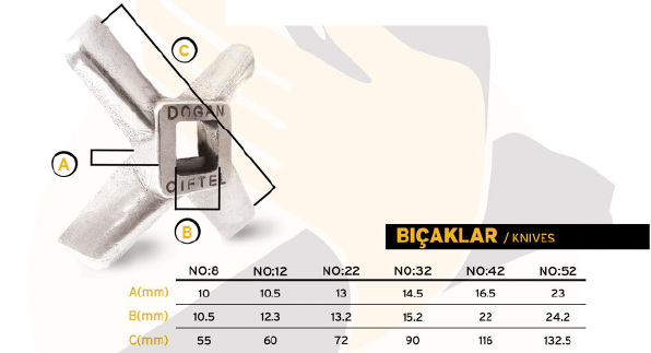Makine Numaranıza göre bıçak siparişi verebilirsiniz.